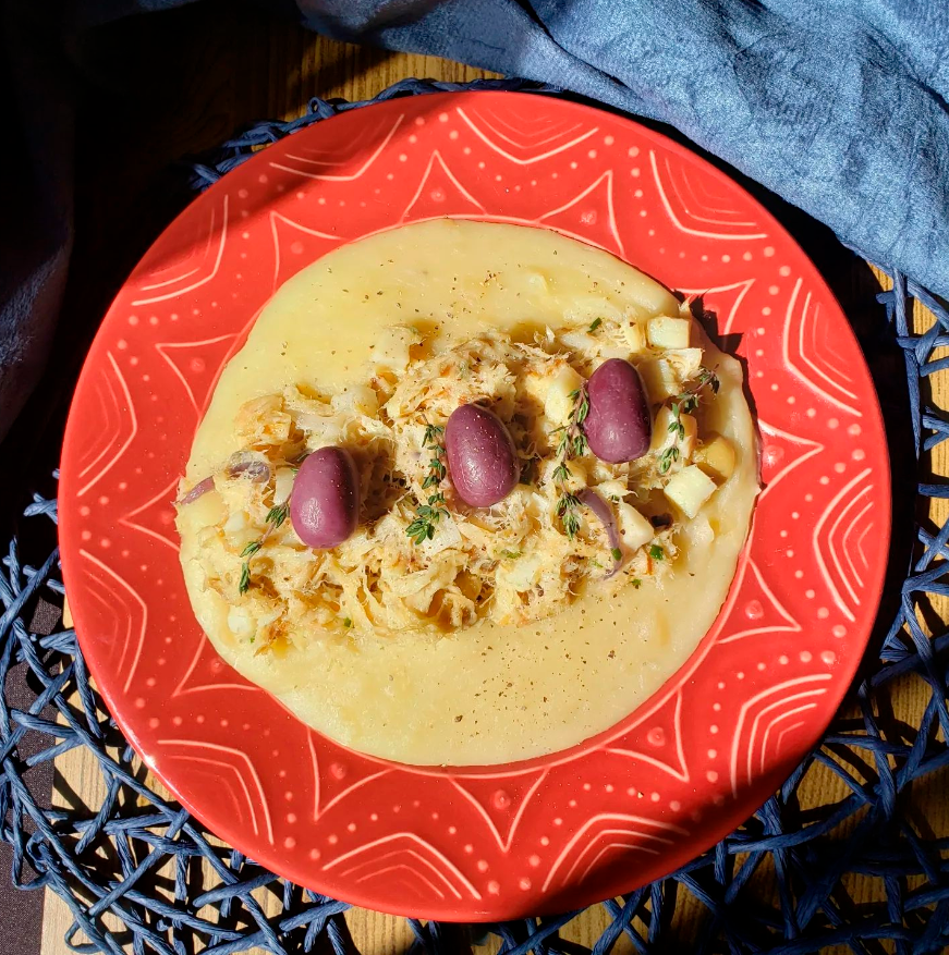 - 600g de bacalhau desfiado e cozido.