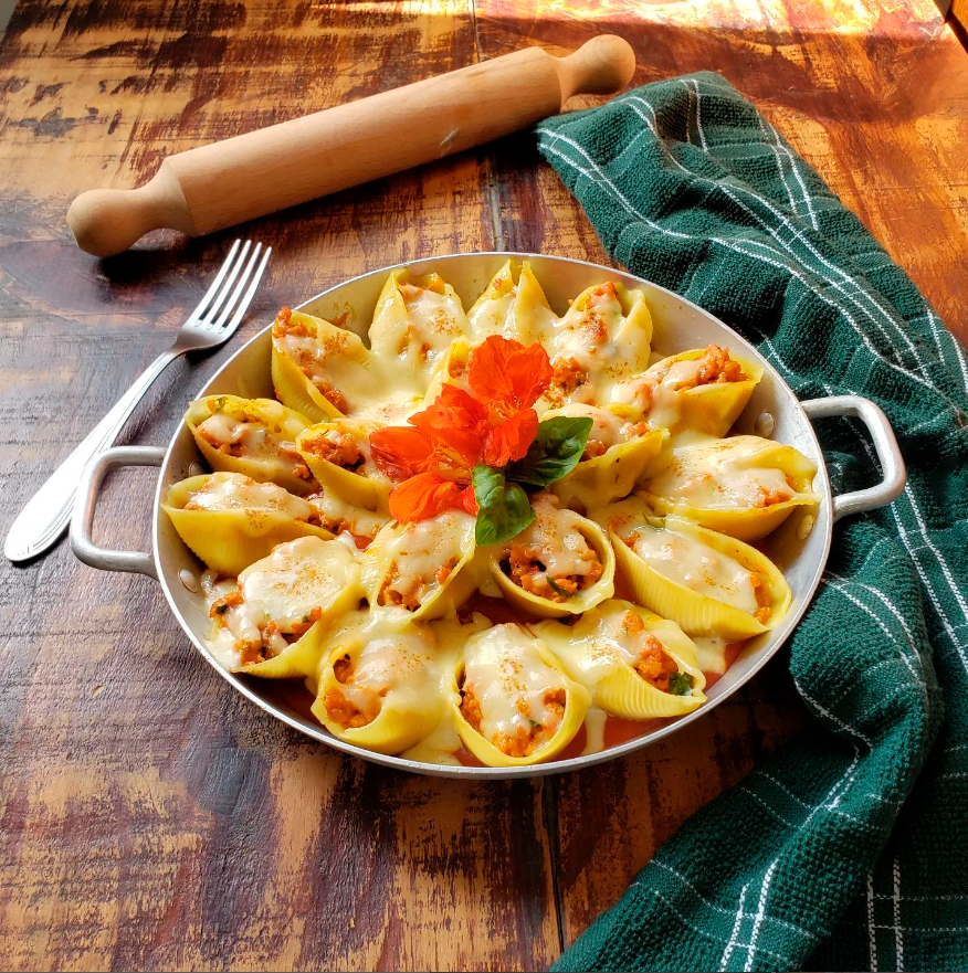 Recheie todo o conchiglione e coloque na assadeira. Põe-se mussarela por cima e leve ao forno por uns 20 minutos até gratinar. Sirva quente.